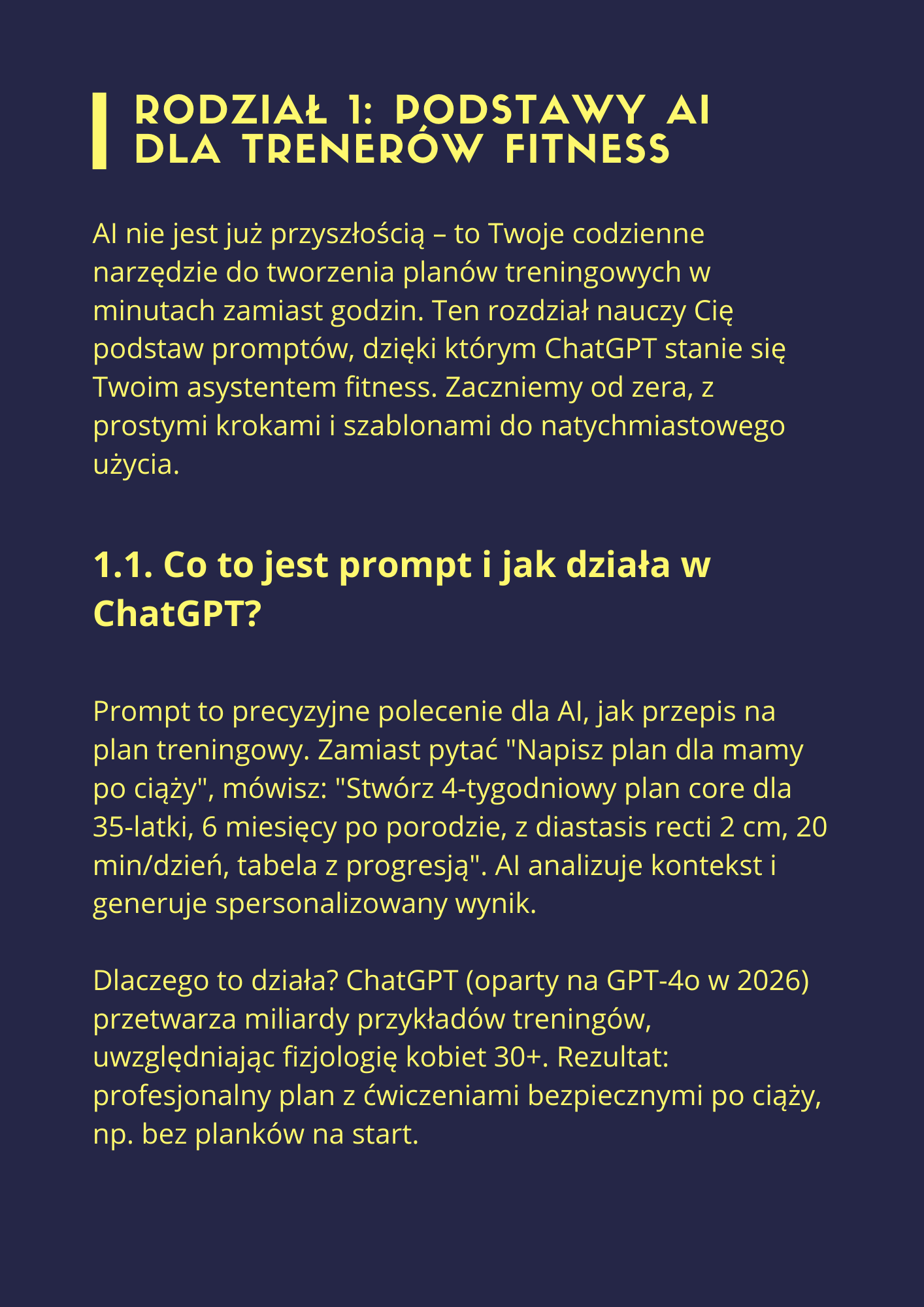 Wyobraź sobie, że zamiast 2–3 godzin analizy wpisujesz jeden prompt w ChatGPT i w 2 minuty masz gotowy, bezpieczny, spersonalizowany plan treningowy dla mamy 30+ po ciąży.